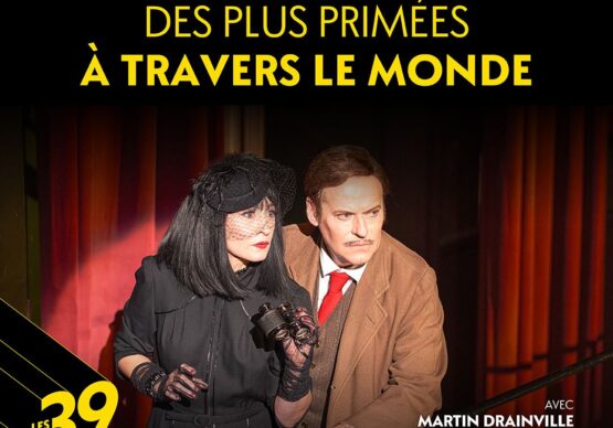 Les 39 marches, la comédie policière des plus primées à travers le monde, prend l’affiche au Québec avec en vedette Benoît Brière, Martin Drainville, Luc Guérin et Évelyne Rompré. Adaptée à l’origine par Patrick Barlow et tirée du roman de John Buchan et du classique film à suspense The 39 Steps d’Alfred Hitchcock, cette satire hilarante met en scène des dizaines de personnages, permettant au génie comique et au jeu physique des quatre acteurs de se déployer sous nos yeux. Cette délirante intrigue d’espionnage raconte l’histoire de Richard Hannay, un gentleman faussement accusé du meurtre d’une femme, forcé de partir dans une incroyable cavale à travers l’Angleterre.