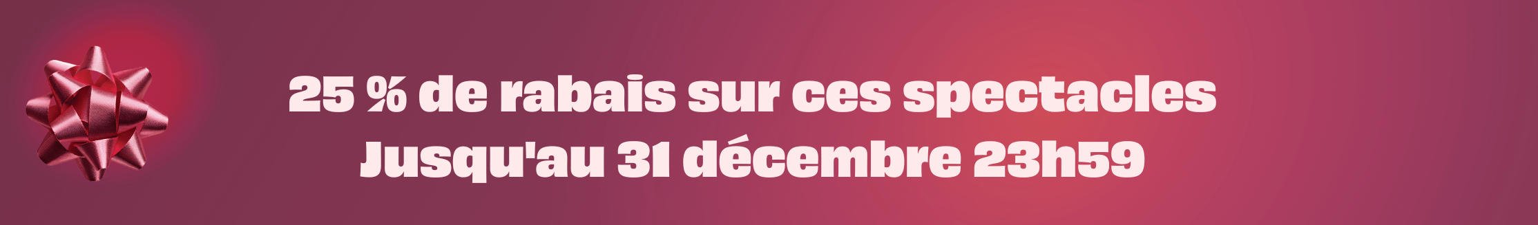Les prix incluent les taxes et les frais. Les offres sont valides du 11 novembre 11 h au 31 décembre 2025, 23 h 59 ou jusqu’à épuisement des billets. Aucun remboursement ou ajustement de prix, sur achats antérieurs. Les billets de spectacles ne sont ni échangeables ni remboursables. Les ventes sont finales. Politique de remboursement disponible sur notre site web. Ne peut être jumelée à une autre promotion. Quantités limitées. Ne s’applique pas sur les sièges loggia. D’autres conditions peuvent s’appliquer.
